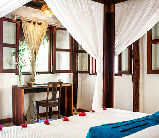 A private bungalow ensconced in Casa Violeta’s jungle garden, 50 meters from the sea.