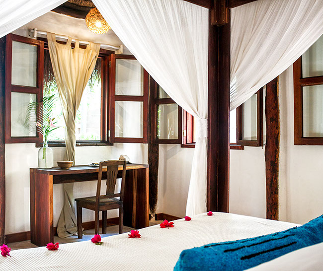 A private bungalow ensconced in Casa Violeta’s jungle garden, 50 meters from the sea.