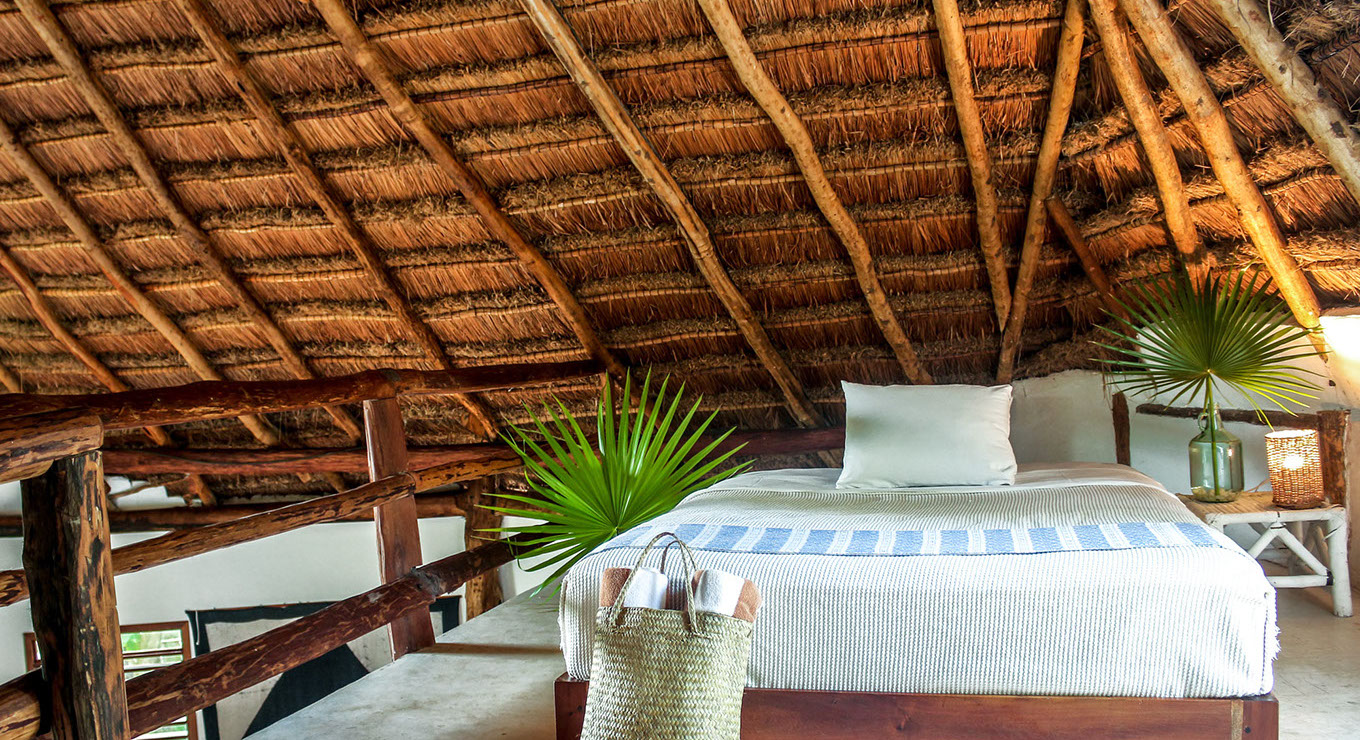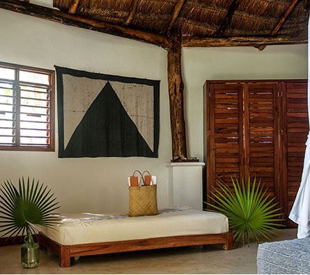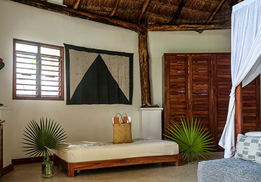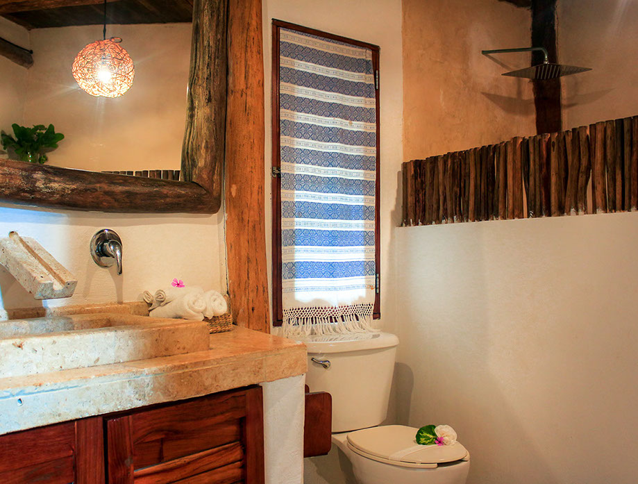 A spacious two-level garden view room, located on a particularly sacred energy center on our property and upstairs from the yoga studio.